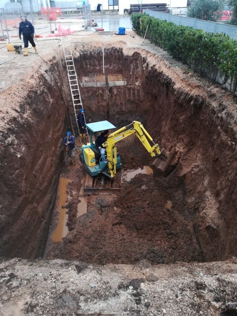 - scavi per l’edilizia civile e industriale, consolidamento di fondazioni attraverso l'utilizzo di pali e micropali per la messa in sicurezza di edifici, rinforzando le fondazioni e aumentando la portanza del terreno;